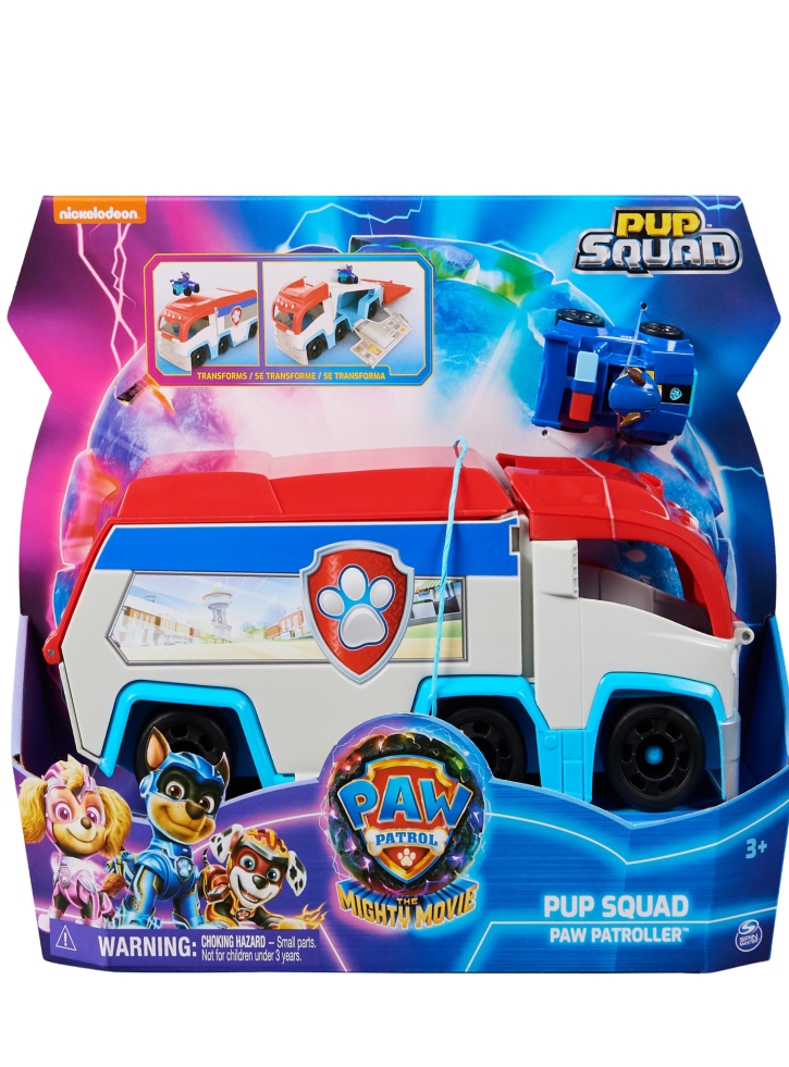 Pregătește-te pentru următoarea ta mare misiune de salvare cu mini-patrula PAW Patrol Movie 2 și o figurină Mighty Pups Chase, Pup Squad Racer, exact ca în PAW Patrol: The Mighty Movie.