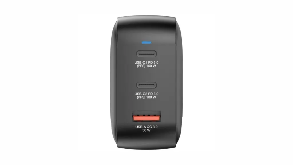 Cele trei porturi (două USB Type-C și unul USB Type-A) pot furniza împreună o putere maximă de 100 de wați, portul 3 putând furniza o putere de până la 100 de wați.