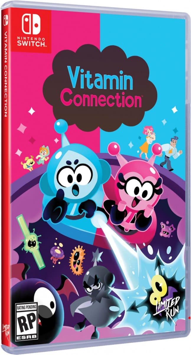 Când jucați împreună, coordonarea este esențială, deoarece un jucător ține controlerul Joy-Con ™ pe verticală pentru a se mișca și trage, iar celălalt ține Joy-Con orizontal pentru a se roti și a ținti. Doar formând o conexiune și valorificând puterea vitaminică a Vita-Boy și Mina-Girl veți putea opri amenințarea moleculară!