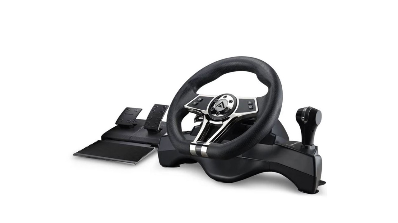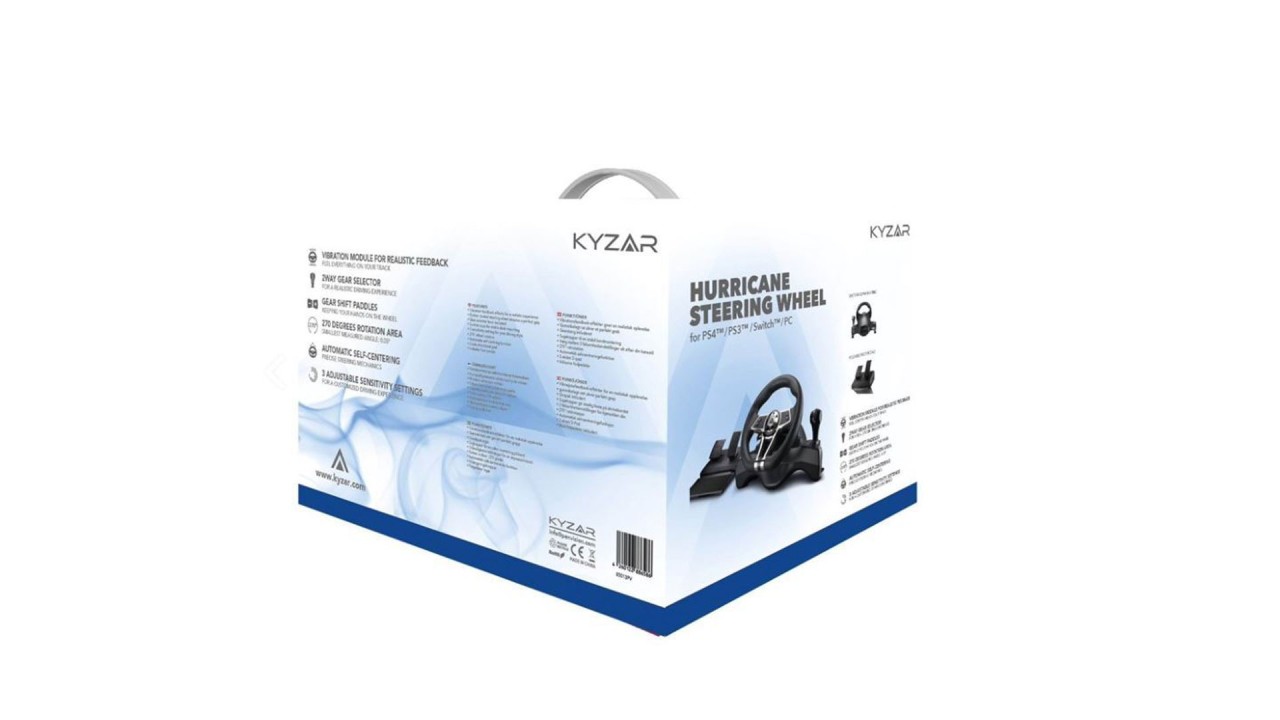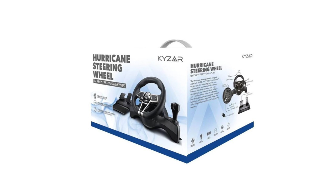 The Kyzar steering wheel makes racing games even more fun, in addition to the high-quality steering wheel and pedals, the steering wheel is equipped with a gear lever and all the buttons you need to play.