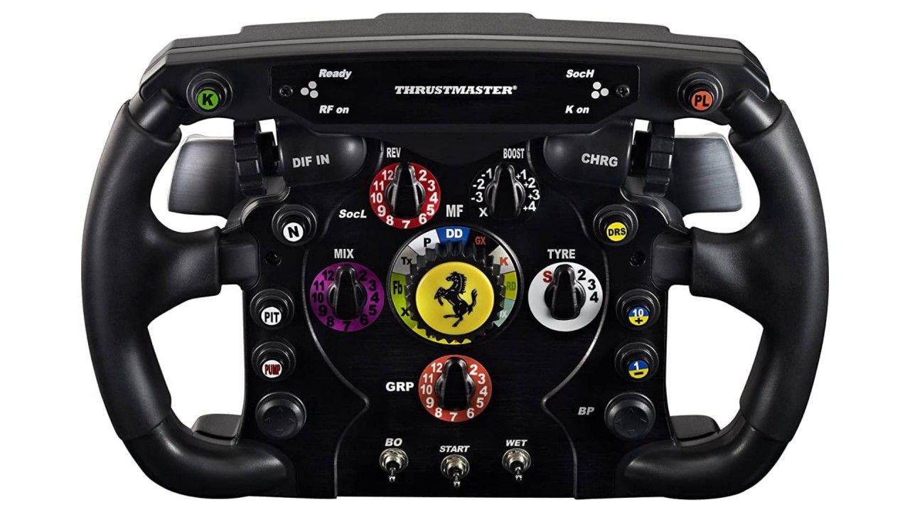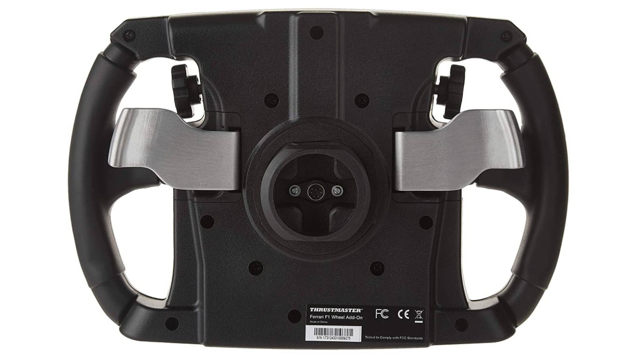 Life-size replica of the 2011 Ferrari Formula 1 racing wheel, officially licensed by Ferrari, authentic "Push & Pull" shifters in scratched and polished F1 style metal.
