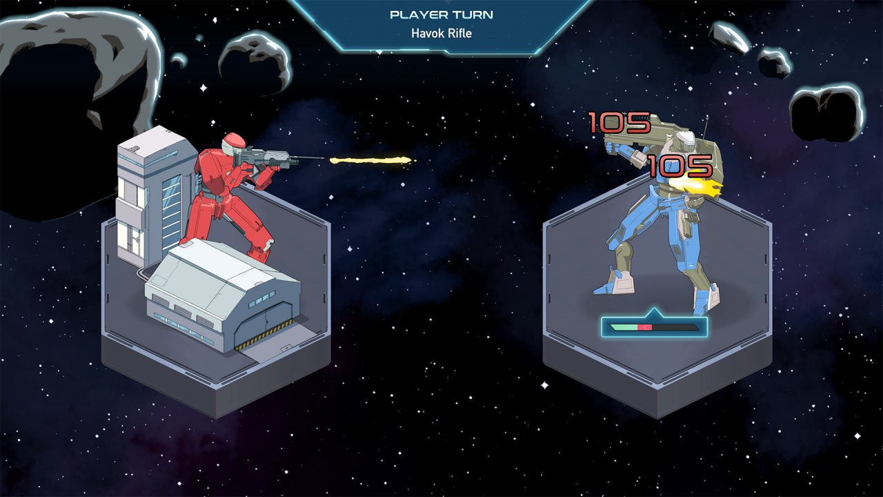 Think tactically as you move your units, face off against rival mecha and watch the outcome in dramatic battle sequences inspired by 90s Japanese animation.