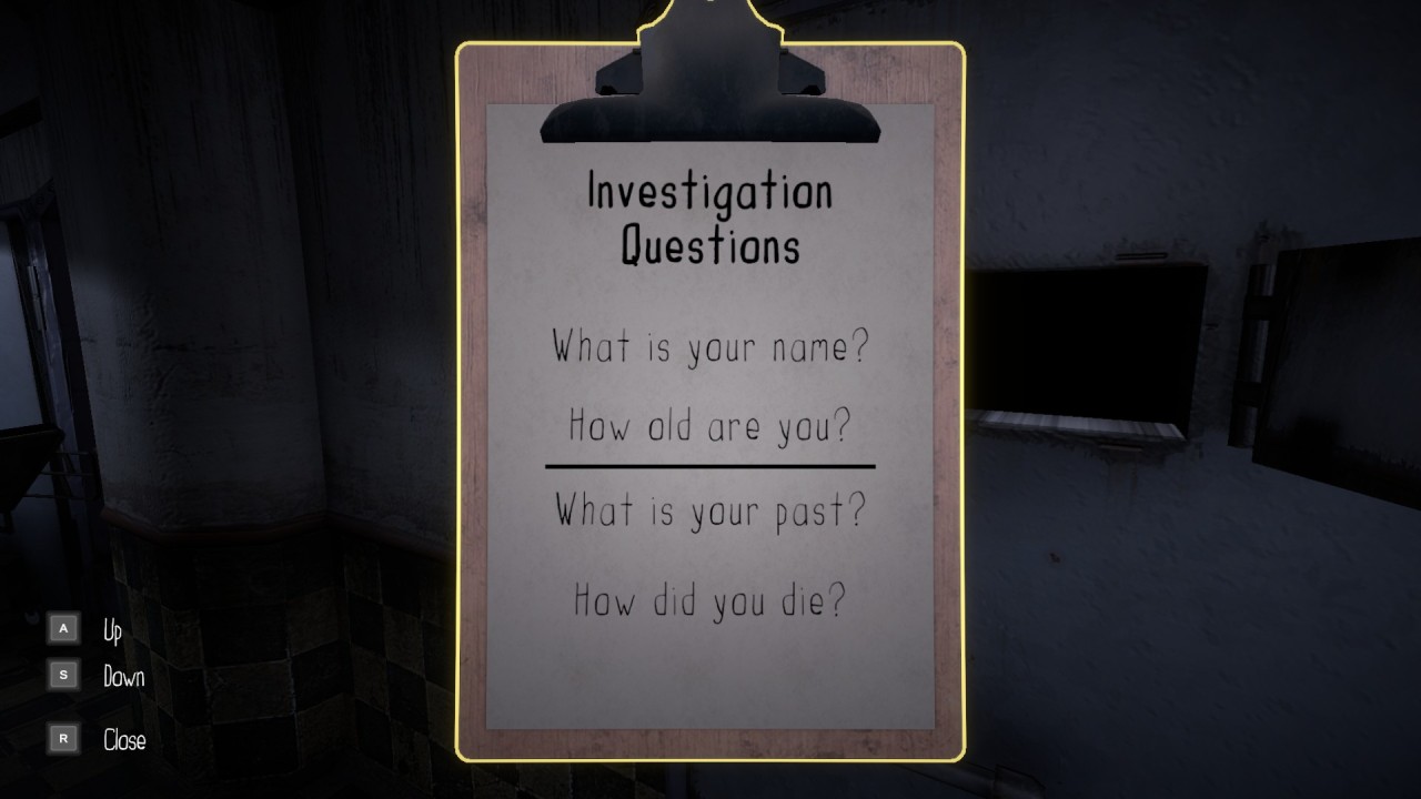 We know that the ghost inhabiting the facility is a result of a death that happened inside. Use your cursed tools to determine the ghost room, then conduct your investigation using the notebook. Ask important questions that will lead you to find the ghost patient record.