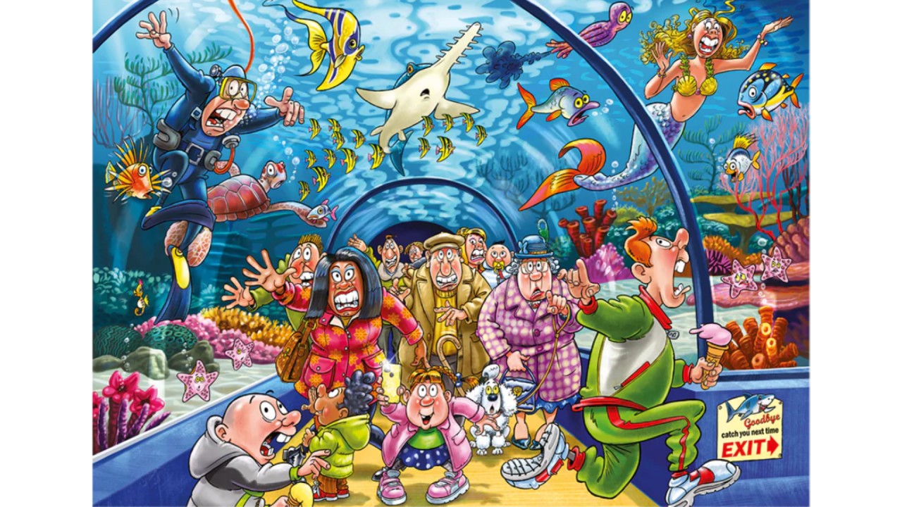În tunelul oceanic, bunica și bunicul Wasgij se pot plimba alături de pești tropicali, țestoase și chiar pot vedea o sirenă, totuși, o creatură s-a apropiat prea mult pentru confort.