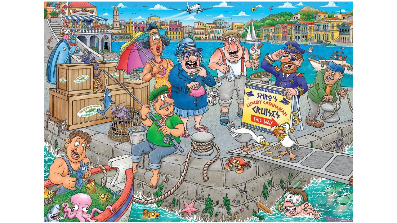 The Wasgij grandparents' plans for a luxury catamaran cruise take an unexpected turn when they notice something that redefines their idea of luxury. This is the scene you have to solve!