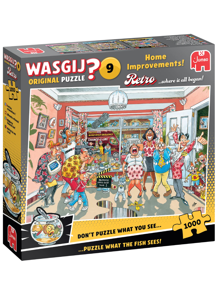 Pregătește-te pentru un haos total în acest puzzle hilar din seria Wasgij! Home Improvements îți aduce o scenă plină de surprize, în care renovarea unei case nu merge chiar conform planului.