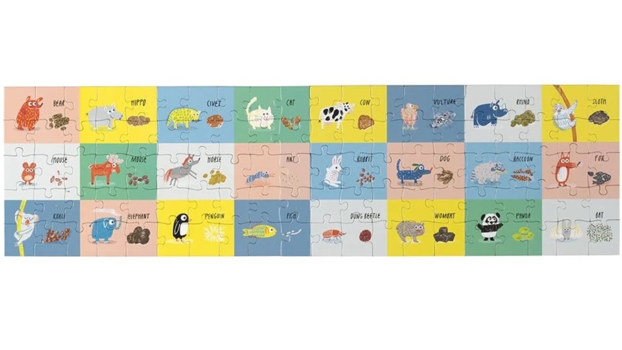Descoperă lumea fascinantă a excrementelor animalelor cu acest puzzle de podea colorat.