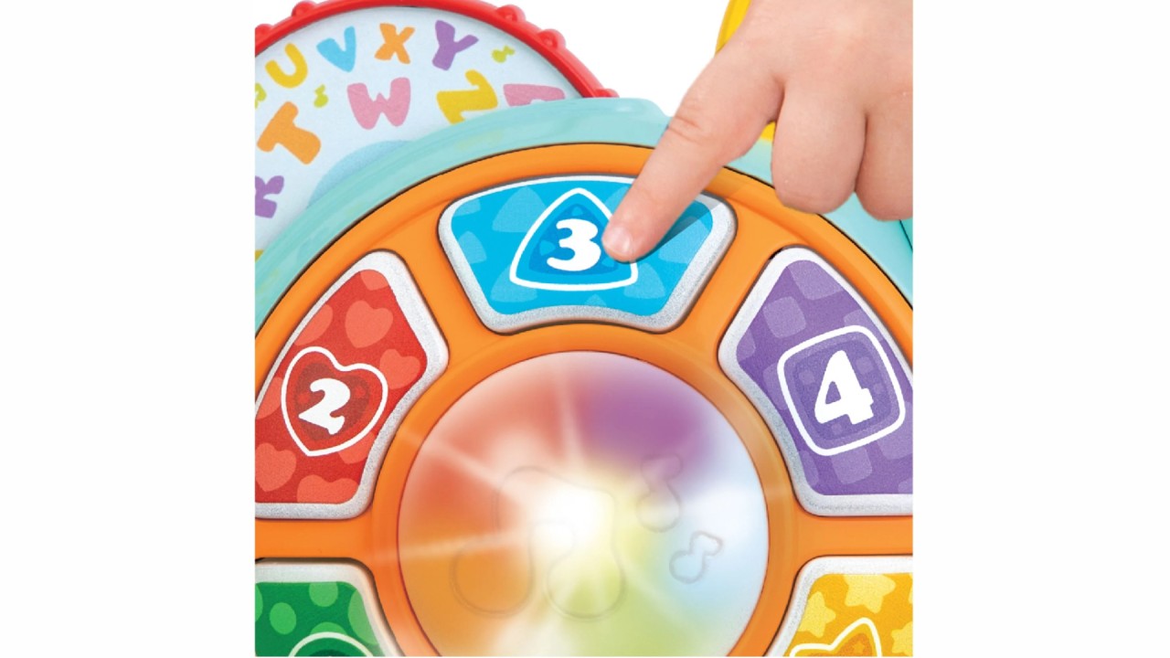 The toy is equipped with 5 easy -to -press buttons, which enter funny numbers, colors and phrases.