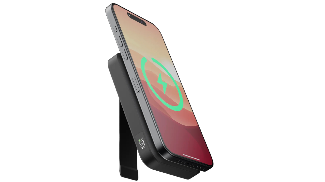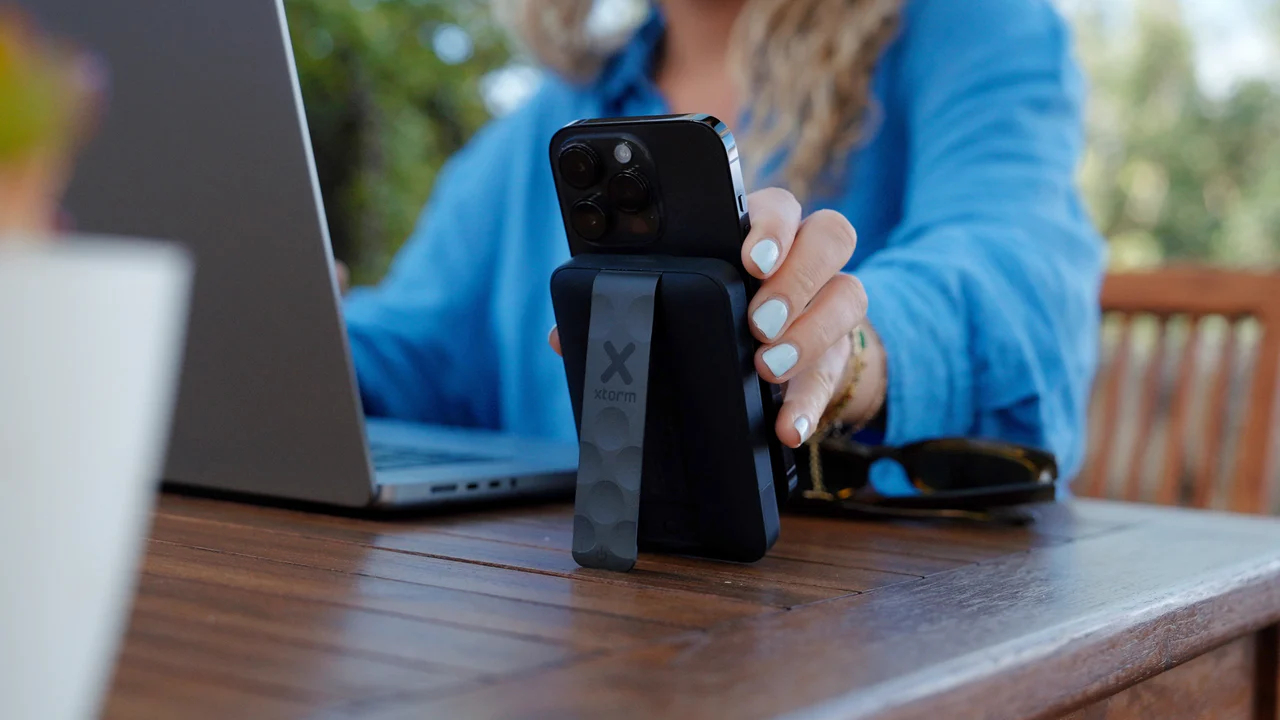 This Power Bank clicks magnetic on your phone and charges it quickly with 15W Xtorm Magcharge Ultra.