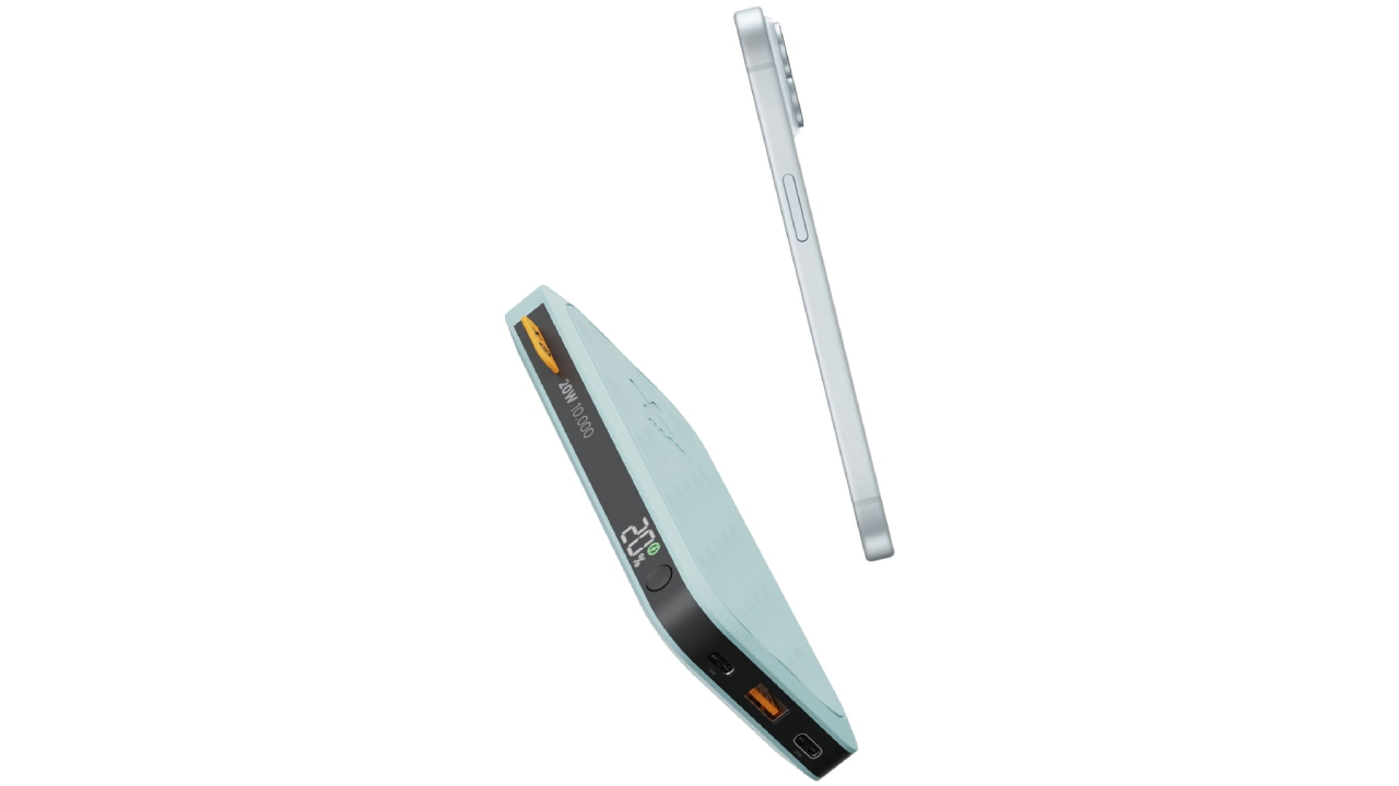 Acest Power Bank de 10.000mAh are două porturi USB-C și un port USB-A.