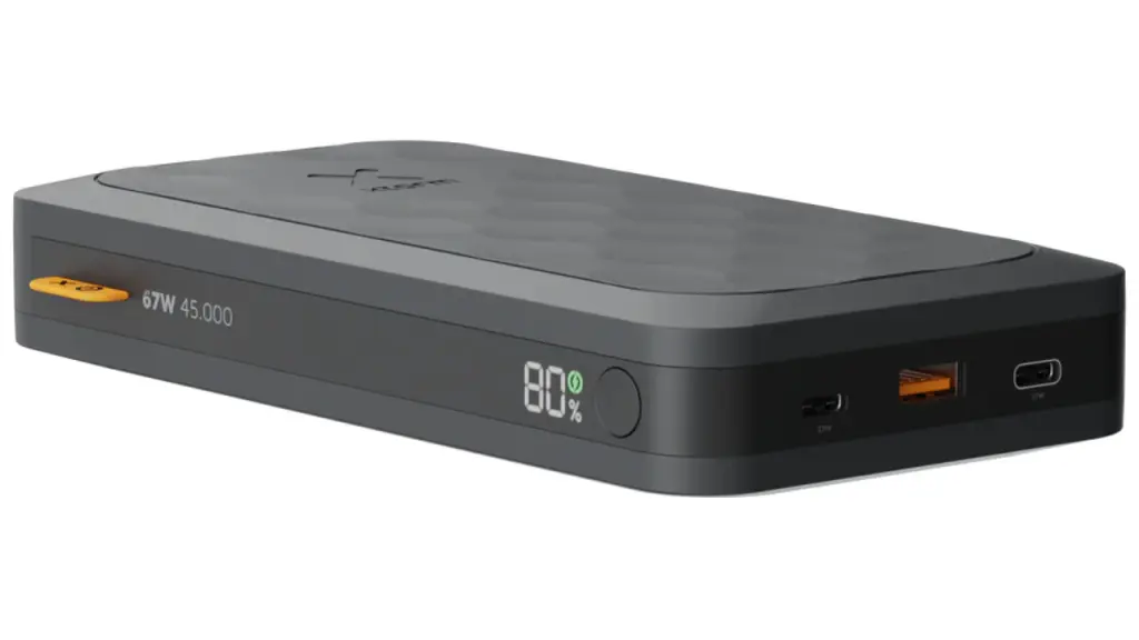 Acest Power Bank de 45.000 mAh are un port USB-A și două porturi super-rapide USB-C PD.