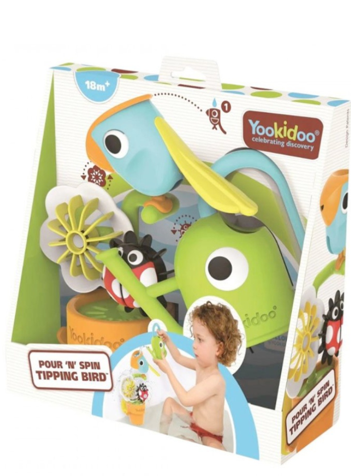Setul de joacă pentru baie Pour ‘N’ Spin Tipping Bird aduce bucurie și distracție în procesul de îmbăiere pentru cei mici.