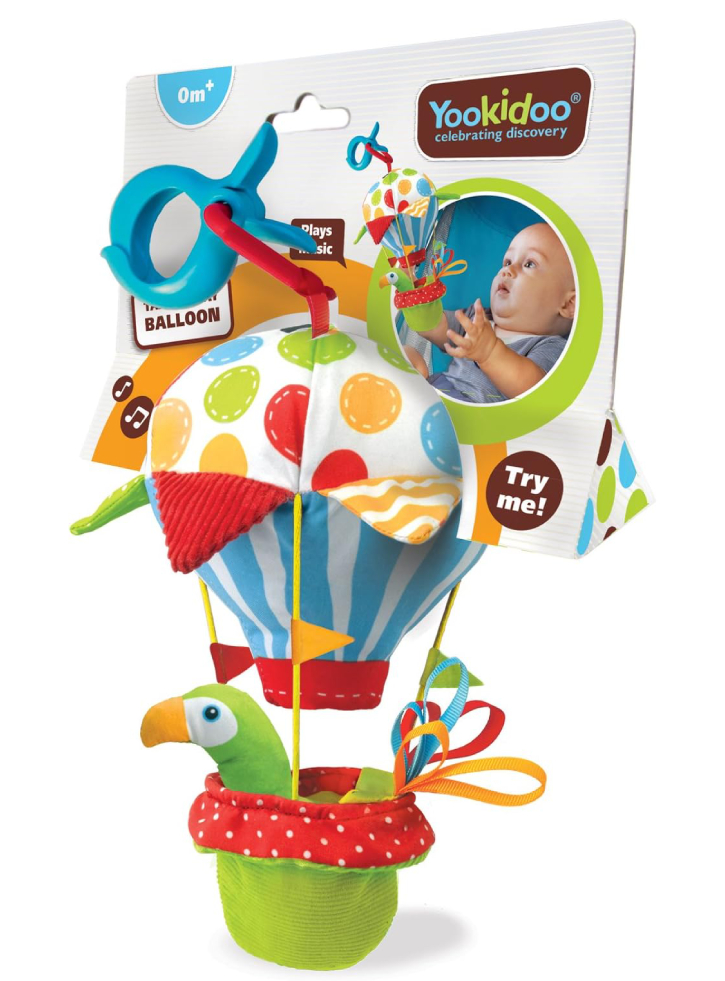 Atașați balonul cu aer cald la cărucior, la căruciorul pentru copii pentru a încuraja bebelușul să se întindă și să exploreze.