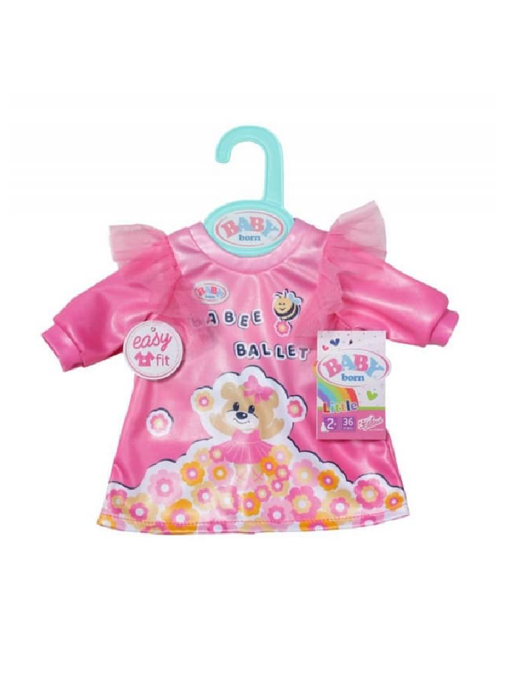 Rochia are un desen minunat a unui ursuleț îmbrăcat ca o balerină care dansează pe o pajiște cu flori.