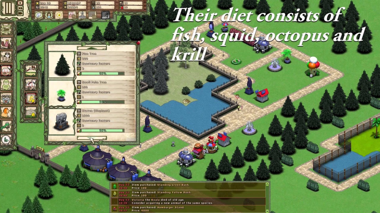 Caracteristici: - Construiește un parc zoologic atent planificat, care să țină toate animalele și clienții fericiți.